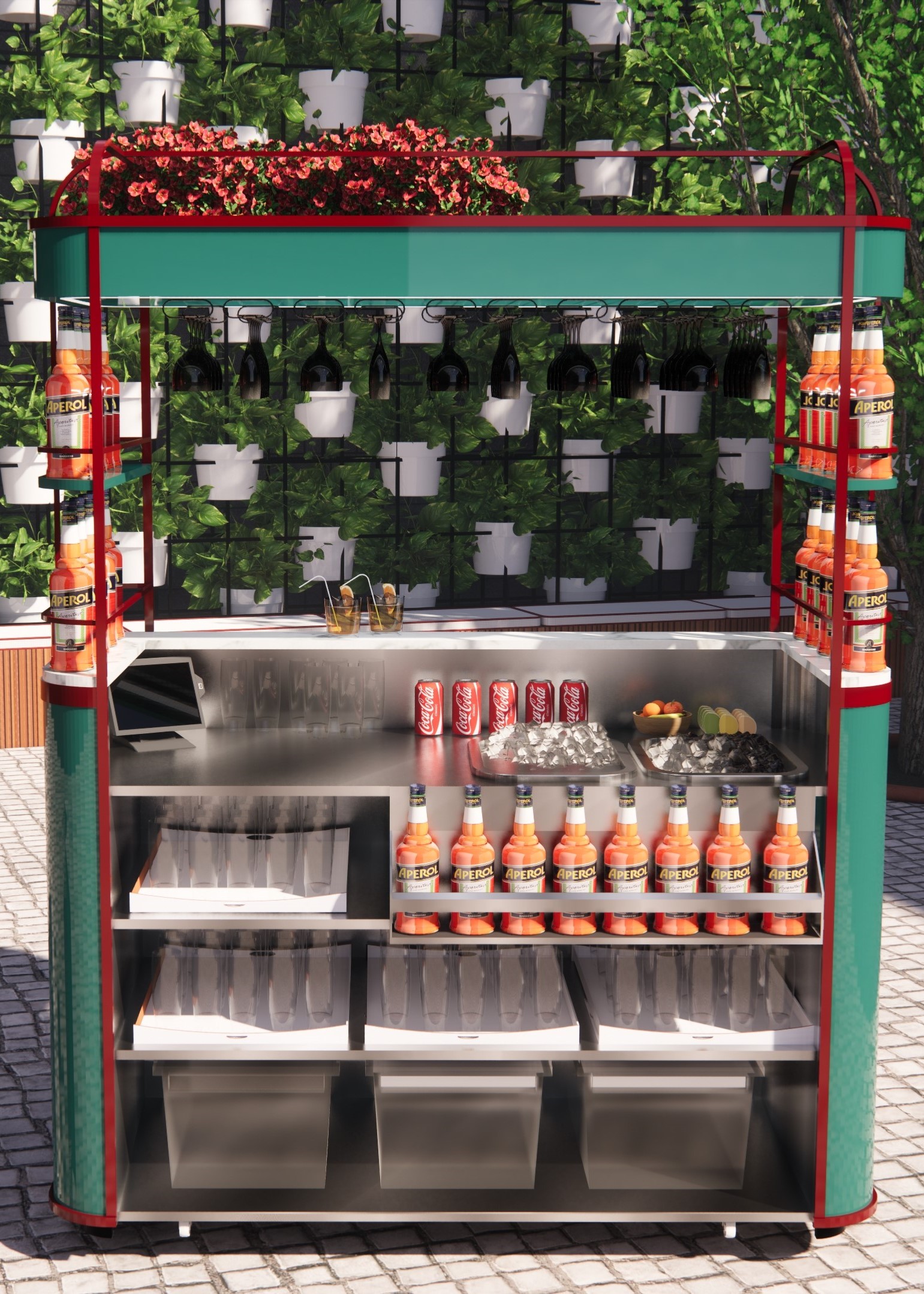 The brief was to design a Mobile Bar for Bellucci Cucina, located at Australia Square, Sydney. The design considers multiple functions, such as an additional bar for busy Friday drinks, a travelling bar for trade shows and events, as well as a waiters station for restaurant service. A removable canopy provides protection from changing weather conditions. Overhead built in LED lighting enables the transition from day to night service. A power outlet has been included to connect a POS system and blender. Magnetic signage can be affixed to the front to promote events. Freelance work for AZB Creative. Design by DARREN JAMES SCOTT.