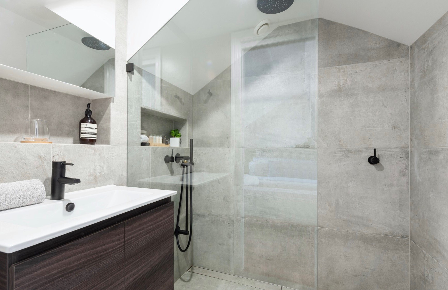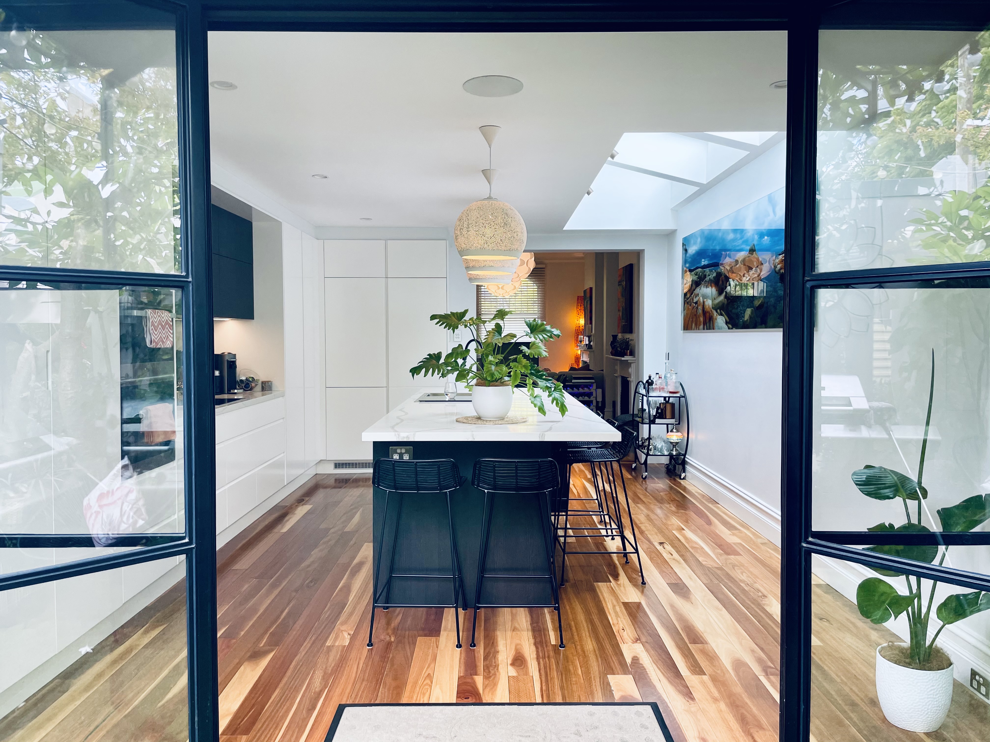 A charming terraced house nestled in a quiet leafy street, well deserving of a good pampering. This major makeover included a new entertainer's kitchen, a day spa-inspired bathroom, and a welcoming loft-style bedroom with a spacious ensuite. The outdoor space was the perfect addition to blur the lines between inside and out. By taking advantage of the bold black steel bi-fold doors another room was effectively added to the home.